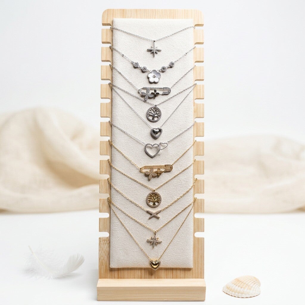 Nous proposons des bijoux en acier inoxydable modernes, résistants et pleins de style, pensés pour accompagner chaque femme au quotidien. Nos pièces sont conçues pour briller longtemps, résister à l’eau et rester aussi belles qu’au premier jour.